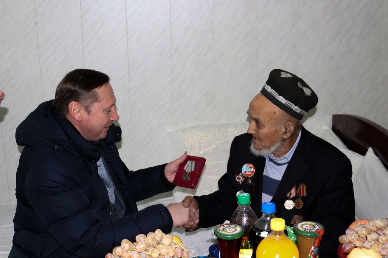 Поздравляя ветерана, Андрей Варламов выразил глубокую благодарность: «От имени российского и таджикского народа низкий вам поклон! Благодаря вам мы сейчас находимся здесь и общаемся с вами».