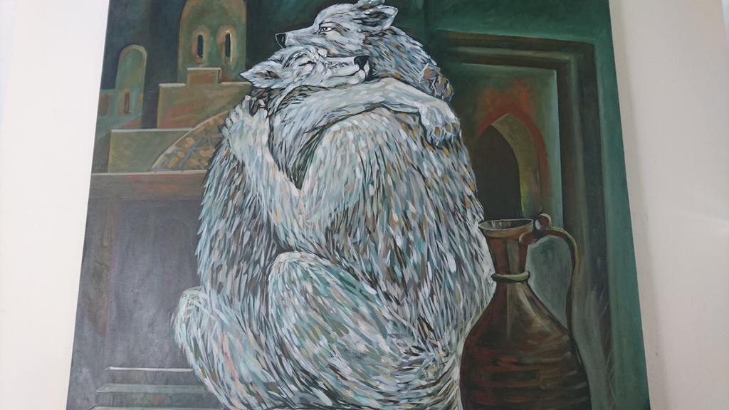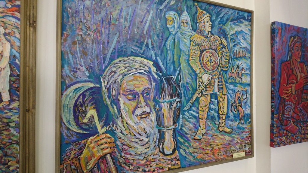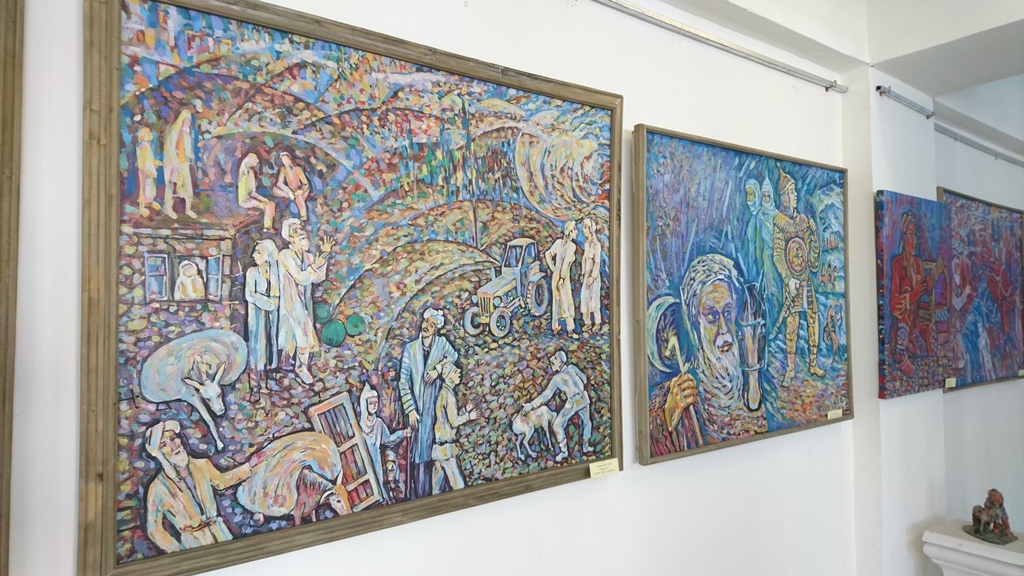 «Среди этих картин есть те, на которых я пытался передать смысл через определённые детали, есть те, где изображены реальные люди, – рассказывает художник. — В основном, я изображаю мотивы сельской жизни, рисую натюрморты, люблю изображать на моих картинах дружбу, как на картине с волками».