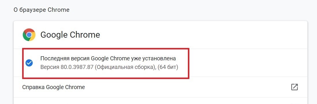 В первую очередь нужно убедиться, что у вас установлено последнее обновление Chrome 80 версии. Для этого нужно зайти в «Настройки» → «О браузере Chrome». В этом меню можно проверить версию браузере и при необходимости обновиться.