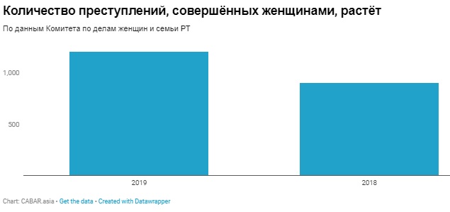 По данным Комитета по делам женщин и семьи при Правительстве РТ, в первой половине 2019 года в стране лицами женского пола было совершено 1200 преступлений, что на 300 преступлений больше, чем за тот же срок в 2018 году.