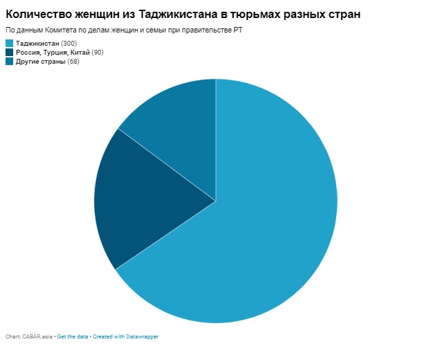 Комитет сообщает, что в настоящее время в единственной женской тюрьме города Нурек находится около 300 женщин. 158 гражданок Таджикистана находятся в тюрьмах других стран, в том числе 90 в России, Турции и Китае по различным обвинениям, включая торговлю наркотиками и убийства.