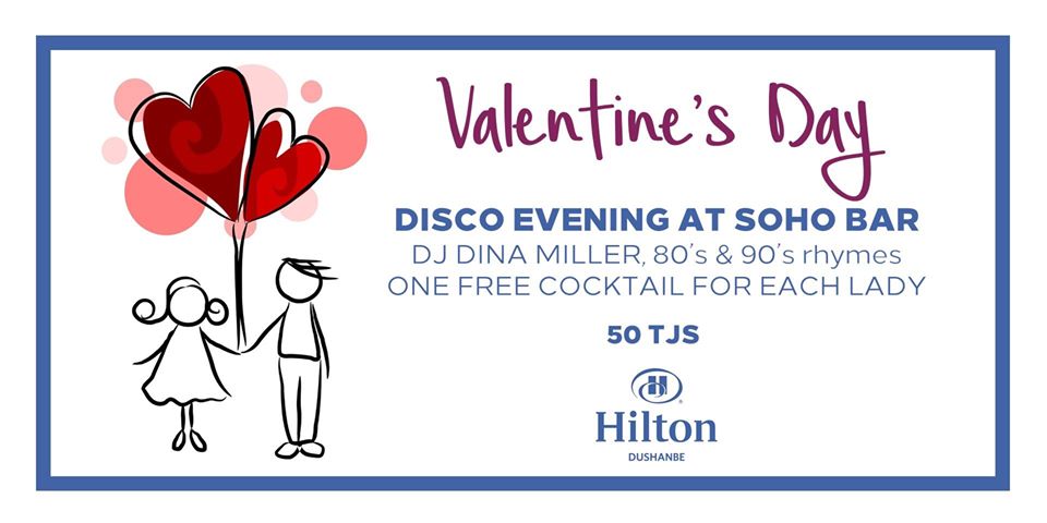 Кто предпочитает потанцевать под хиты 80-х — вам сюда. Диско-вечер в «Сохо Баре» отеля «Хилтон» в День Святого Валентина с DJ Dina Miller. Начало дискотеки в 21:00. Стоимость – 50 сомони.