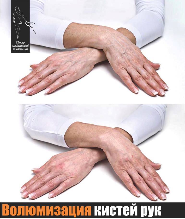 Руки часто выдают возраст женщины, даже если лицо выглядит на 18 лет. С возрастом подкожно-жировая клетчатка истончается, кожа кистей становится дряблой. Поэтому женщины обращаются с запросом поработать с кистями рук, восполнить необходимые объемы. В этих целях применяются филлеры или препараты на основе гидроксиапатита кальция, дающие мгновенный результат.