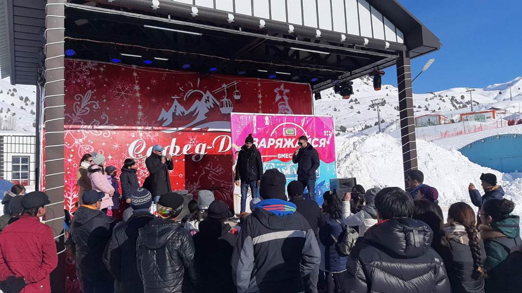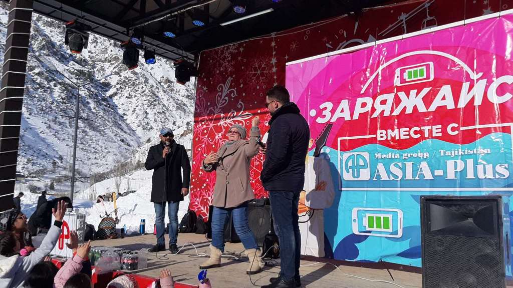 Между катаниями на лыжах и сноубордах ведущие радио «Азия-Плюс» устроили розыгрыши, конкурсы для отдыхающих и дарили победителям подарки. В конкурсах участвовали дети, молодые люди, а также взрослые.