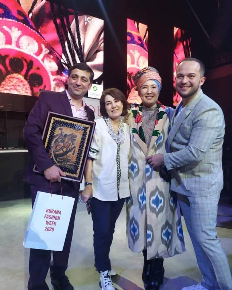 Основатель и Генеральный директор Tajikistan Fashion Week Тохир Ибрагимов со своей командой молодых таджикских дизайнеров Саидджалолом Махсумовым и Шахло Пулатовой приняли участие во втором сезоне Burana Fashion week.