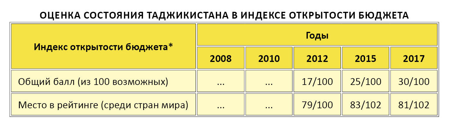 «Отсутствие или недоступность регулярных обзоров и аудиторских отчётов стали причиной получения Таджикистаном низкой оценки в Индексе открытости бюджета», — говорится в Стратегии, утвержденной указом президента страны 31 января этого года.