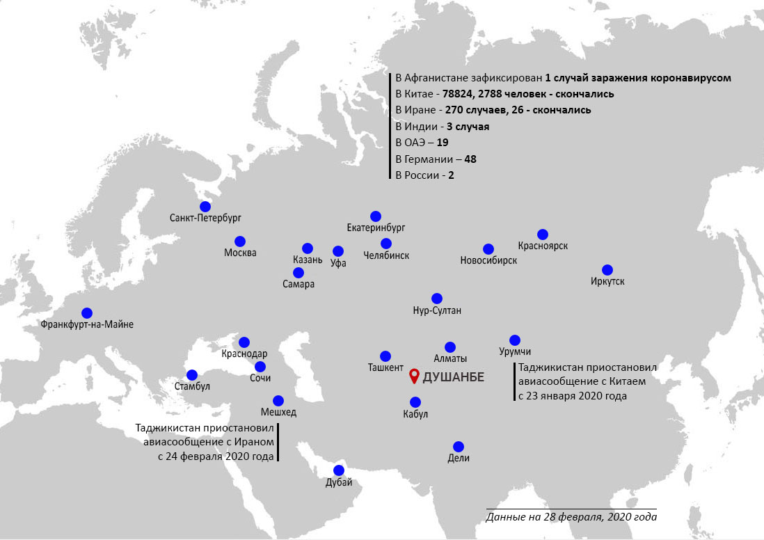 Таджикистан принимает усиленные меры по недопущению проникновения и распространения опасного вируса в республике. Страна уже приостановила авиасообщение с Китаем и Ираном.