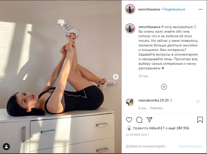 Мадина — одна из немногих популярных личностей, которые общаются со своими подписчиками, спрашивают о том, что им интересно знать об их жизни и более того, отвечают на комментарии. Не всегда, разумеется, ведь каждый пост набирает более 500 комментариев и сотни тысяч лайков. Игнорирует девушка и негативные комментарии, где её обвиняют в том, что ведёт она себя «не как таджичка и мусульманка» и призывают «бояться гнева Аллаха».
