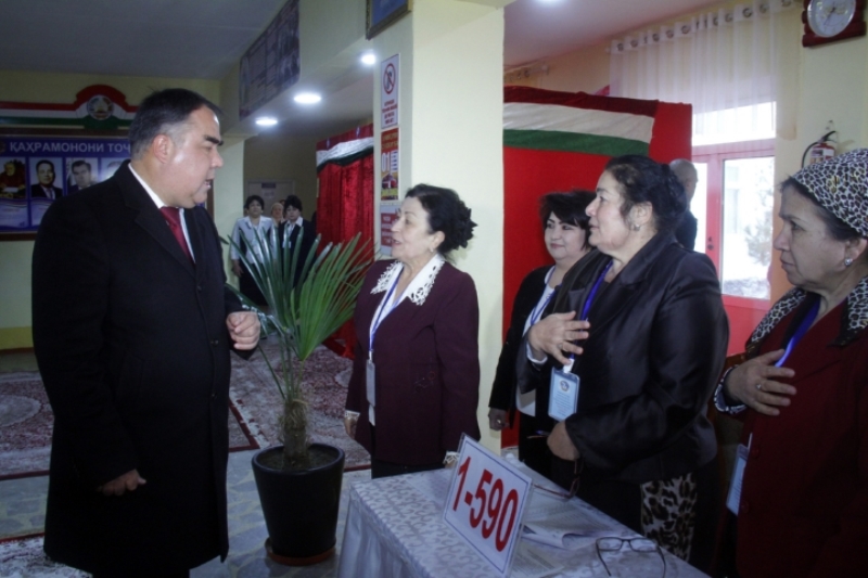 Председатель данного избирательного округа Убайдулло Анваров сообщил, что на участке всего 806 избирателей. Из них, по его словам, до 13.50 проголосовали 326 человек.