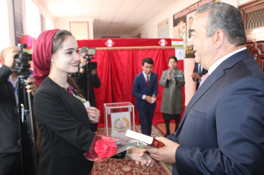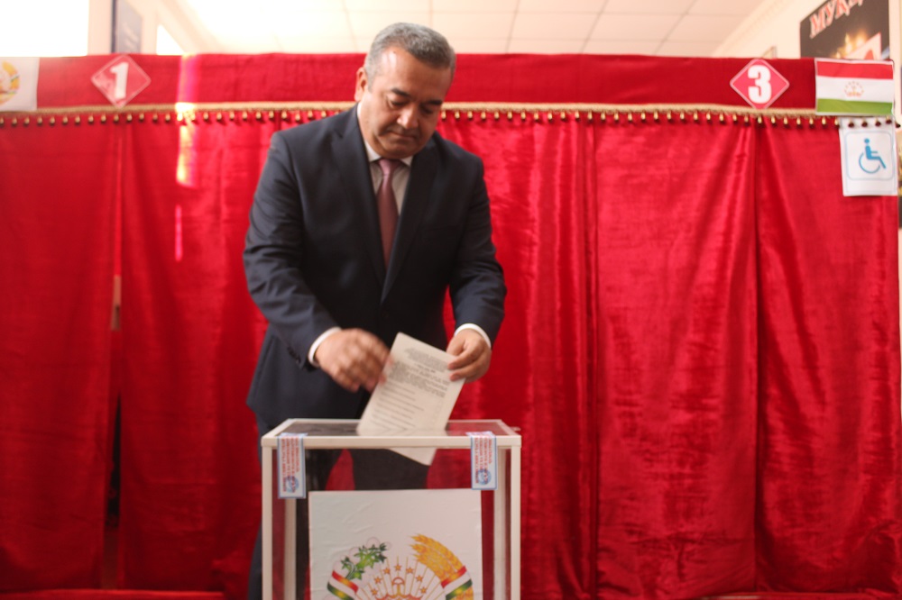 Председатель Хатлонской области Курбон Хакимзода проголосовал в участке №5 республиканского избирательного округа 26.