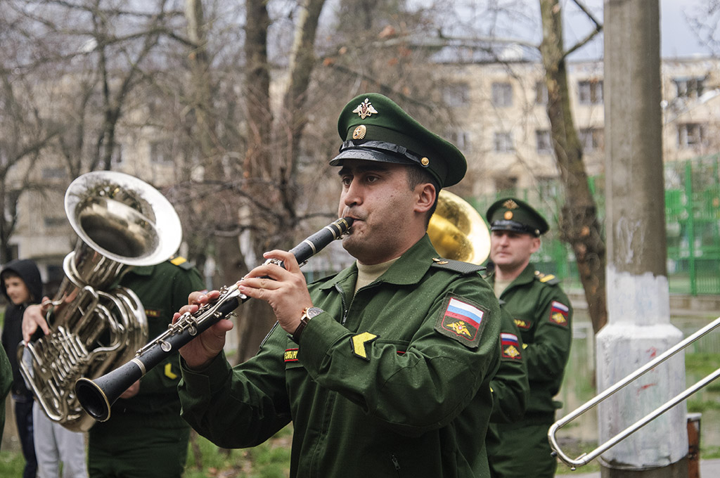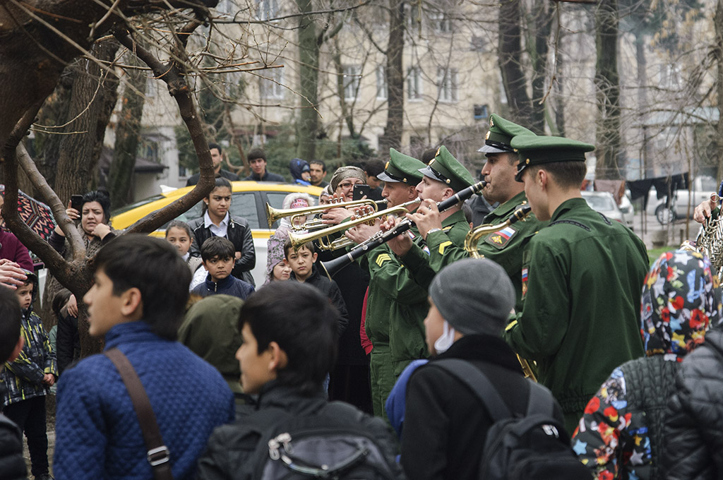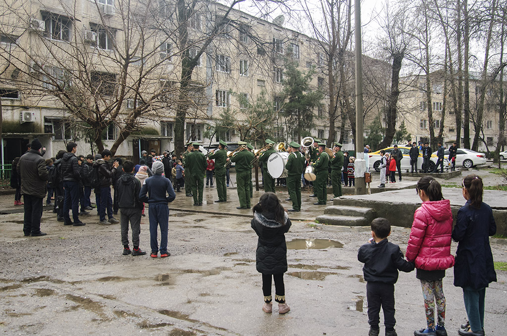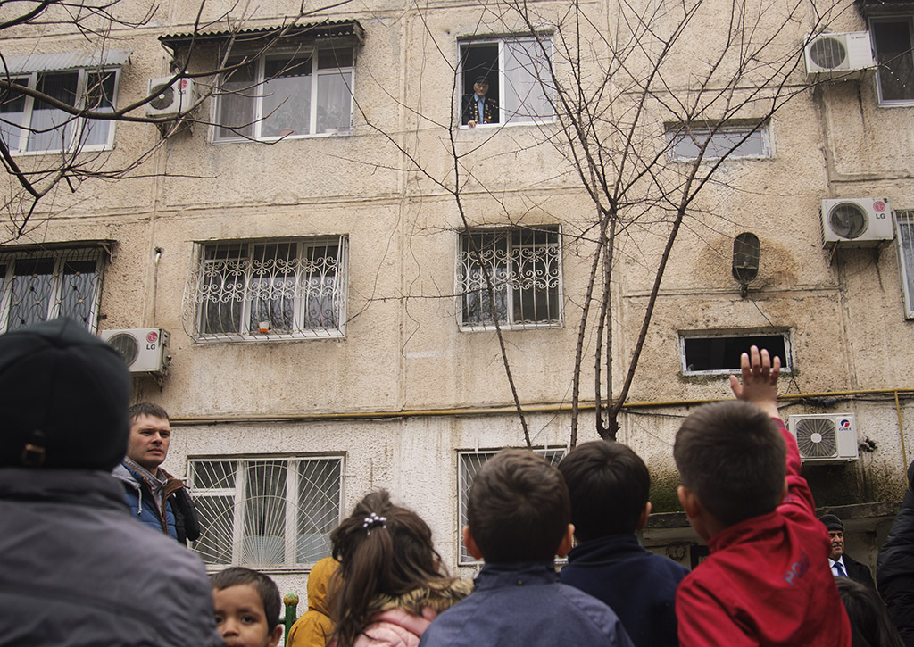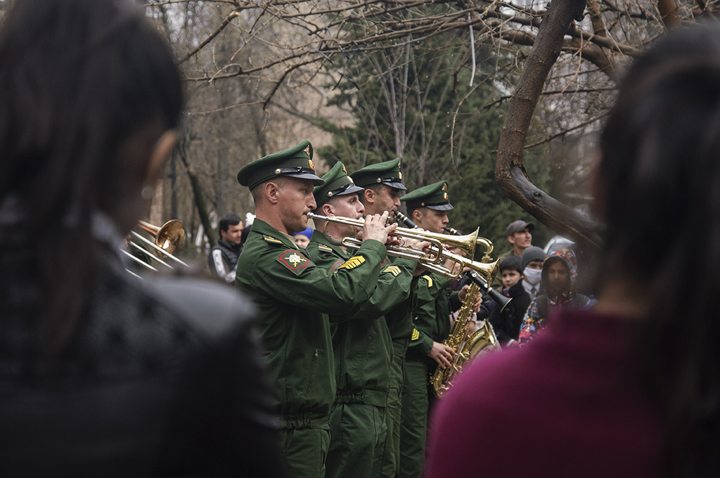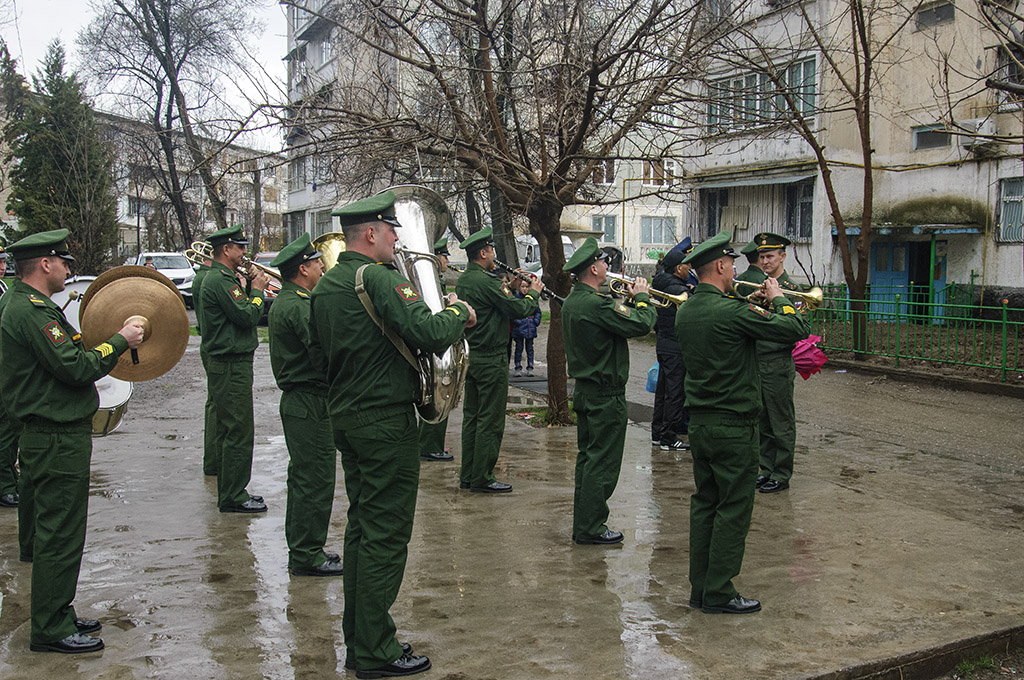 В этот раз военный оркестр сыграл мелодии Победы под окнами Николая Голикова, проживающего в Душанбе по ул. Н. Ганджави.