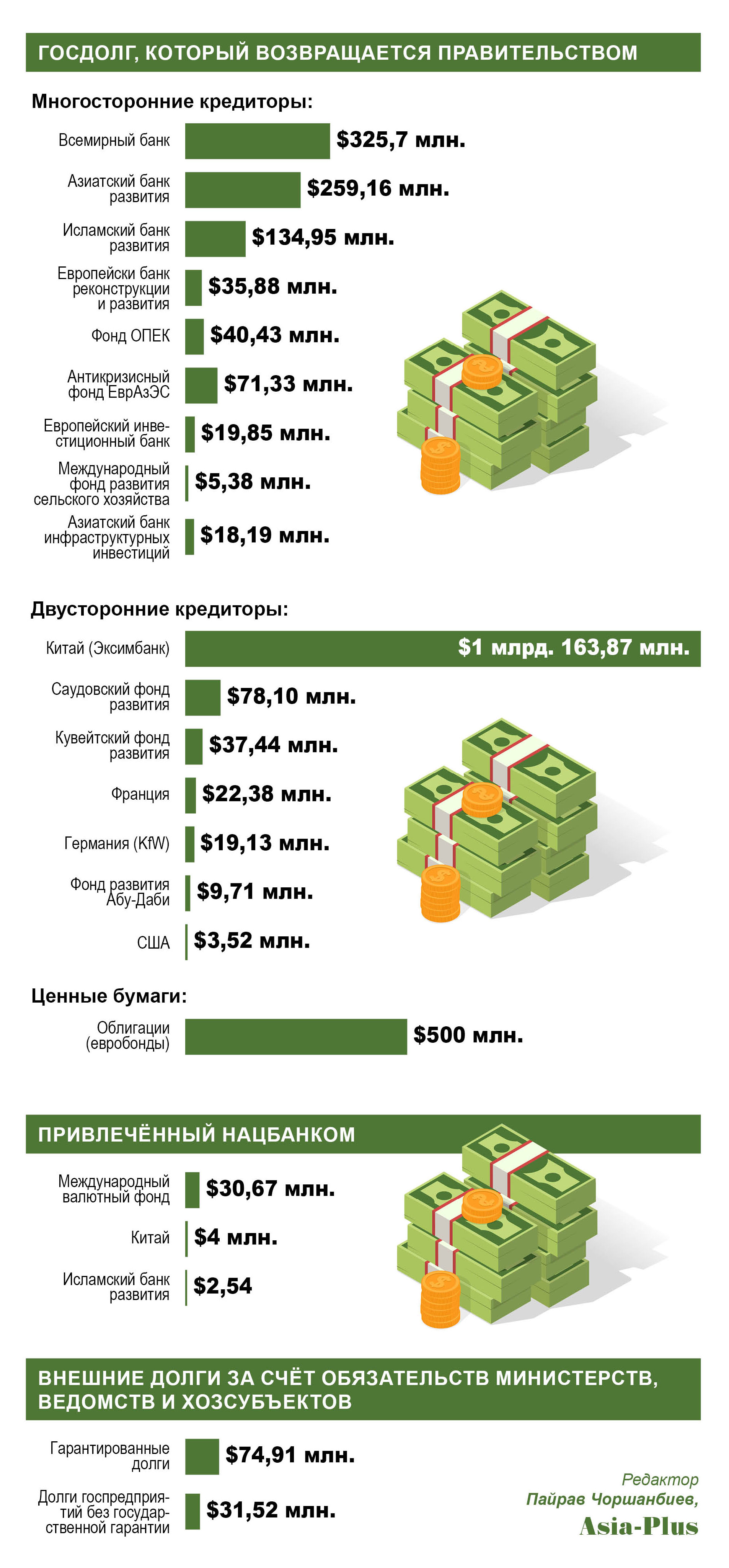 Внешний долг Таджикистана по состоянию на 1 января 2020 года составил $2 млрд. 888,66 млн.