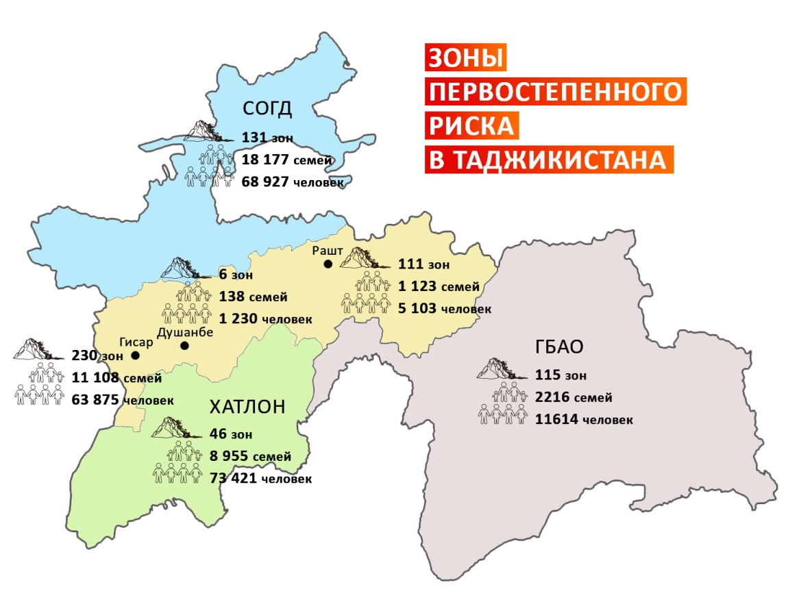 Если взять по республике, двумя самыми уязвимыми географическими кластерами являются бассейны рек Пяндж (Рошткала, Шугнан и Ишкашим) и Сурхоб (Рашт, Нуробод, Таджикабад и Лахш).
