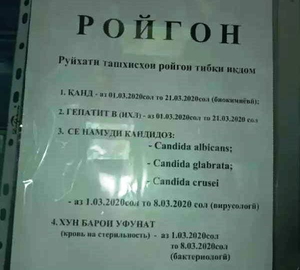 Желающие могут обратиться в лабораторию, которая находится в медцентре «Шифобахш» (Караболо) с 8 до 23 часов.