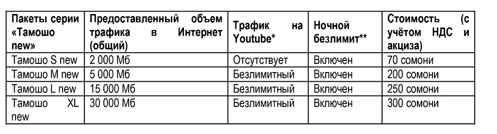 В канун Навруза компания «МегаФон Таджикистан» приготовила для своих клиентов новые интернет-пакеты серии «Тамошо». Линейка «Тамошо new» позволит без ограничений пользоваться любыми интернет-сервисами в ночное время. Также не ограничен по трафику или скорости приема и передачи данных просмотр видео на YouTube.