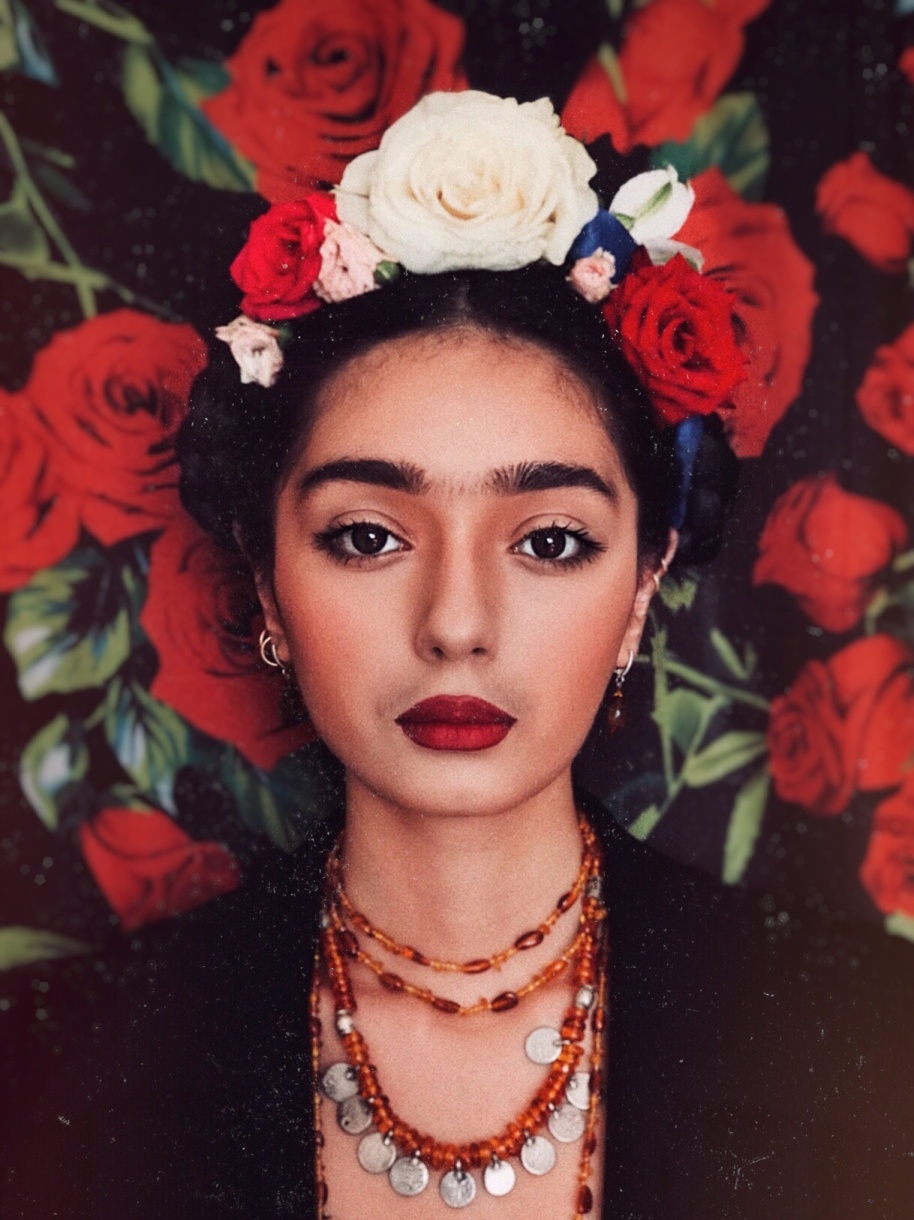 «Мой любимый — это образ мексиканской художницы Фриды Кало. Создавала я ее с особым трепетом, поскольку многие мне говорят, что мы с ней похожи. Не в творениях, конечно, а внешне», — поясняет Зарнигор. На создание образа этой гениальной художницы девушка потратила более 2 часов.