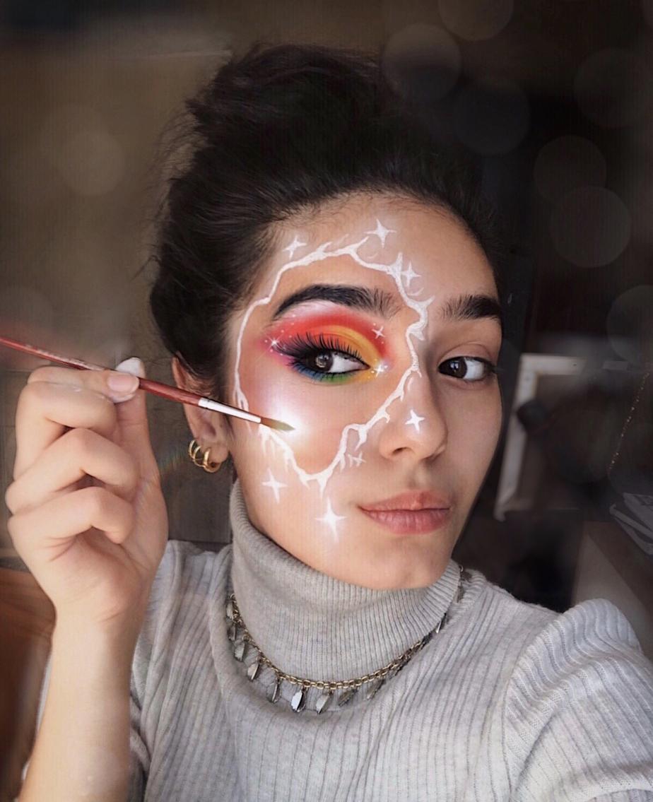 Образы у визажиста очень разнообразные. Среди них можно встретить и композиции про красоту природы, и работы с различными таджикскими орнаментами, и посвящения знаменитым личностям.