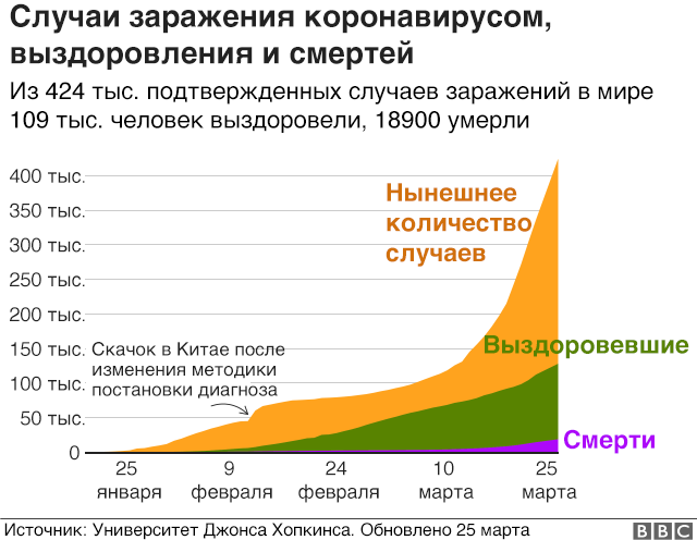 США обогнали Китай по количеству зараженных коронавирусом (82040 случая в США и 81782 в Китае, по данным на вечер четверга). Число случаев в США стремительно растет, в то время как в Китае число новых заражений исчисляется десятками в день, передает ВВС.