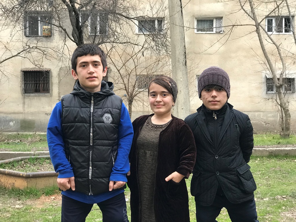 Братья Мирзомиддин и Абубакр Нуриддинзода и их сестра Давриниссо Джураева, живут на 4-ом этаже. Поднимаясь с ними по лестнице, я видела и понимала, насколько им сложно подниматься по ступенькам.