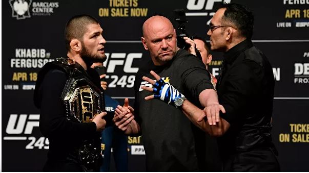 Поединок Хабиба Нурмагомедова и Тони Фергюсона по праву может считаться самым ожидаемым в истории смешанных единоборств. Даже в условиях пандемии коронавируса Абсолютный бойцовский чемпионат (UFC), отменивший несколько турниров, стремился сохранить ивент с участием этих топовых бойцов. Возможно, шоу UFC 249 все же состоится 18 апреля, но в понедельник Нурмагомедов заявил, что его участие в нем фактически невозможно, пишет Спорт РИА Новости