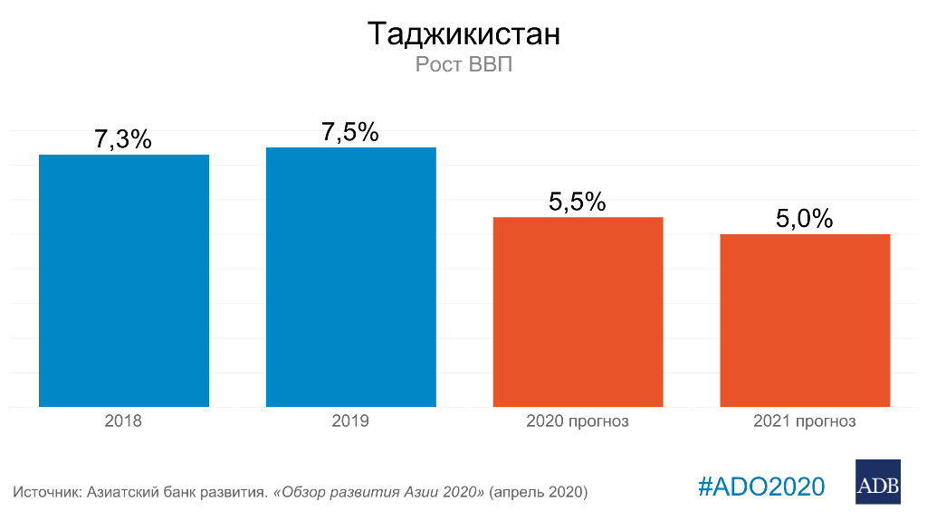 В «Обзоре развития Азии 2020» АБР прогнозирует снижение роста валового внутреннего продукта в Таджикистане до 5,5% в 2020 году и 5,0% в 2021 году (прогноз на 16 марта 2020г.). В 2019 году рост экономики в стране составил 7,5%. «Обзор развития Азии» — это ведущее годовое экономическое издание АБР.