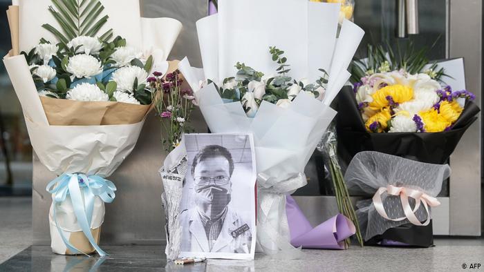 Китайский врач-офтальмолог Ли Вэньлян был первым, кто забил тревогу в связи с коронавирусом. Он сообщал в соцсетях о случаях смертельно опасного заболевания. За что был наказан властями КНР. 1 февраля врач заразился коронавирусом и через неделю умер от последствий COVID-19. На фото портрет врача и цветы в память о нем у госпиталя в Ухане.