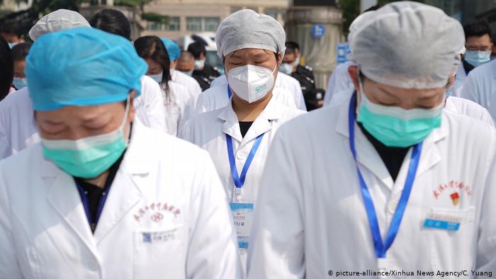 4 апреля жители Китая почтили память тех, кто умер от COVID-19. На этой фотографии китайские врачи во время минуты молчания. В Ухане в декабре 2019 года был выявлен первый случай заболевания. 11 января Пекин официально заявил о первом больном, который умер из-за коронавируса. Всего, по данным китайских властей, от COVID-19 в континентальном Китае умерли более 3 330 человек.