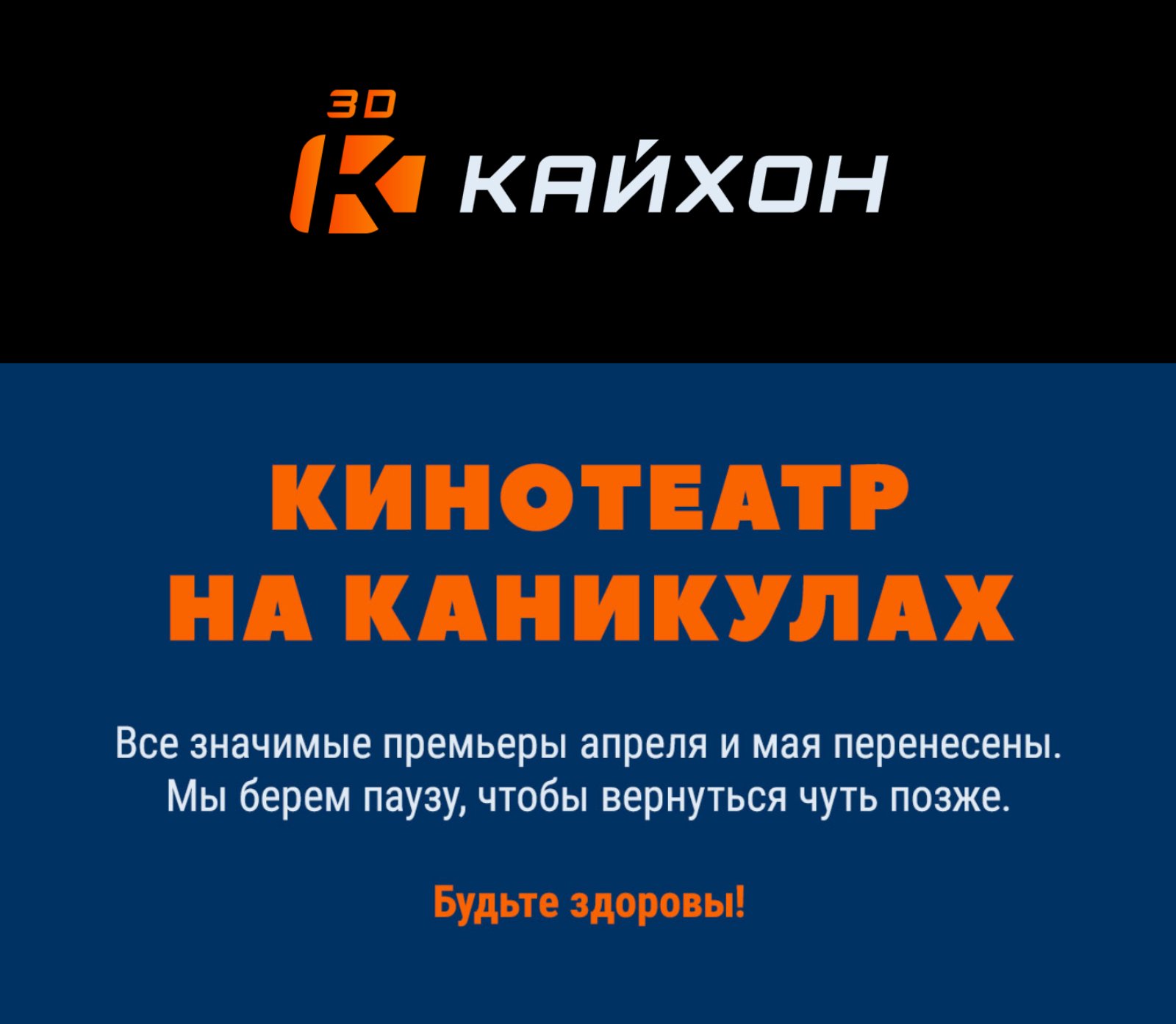 Кинотеатры в Душанбе находятся в глубоком кризисе. 3D-кинотеатр «Кайхон» не работает – с 1 апреля он ушел на каникулы, о чём сообщил на своём сайте и в соцсетях.