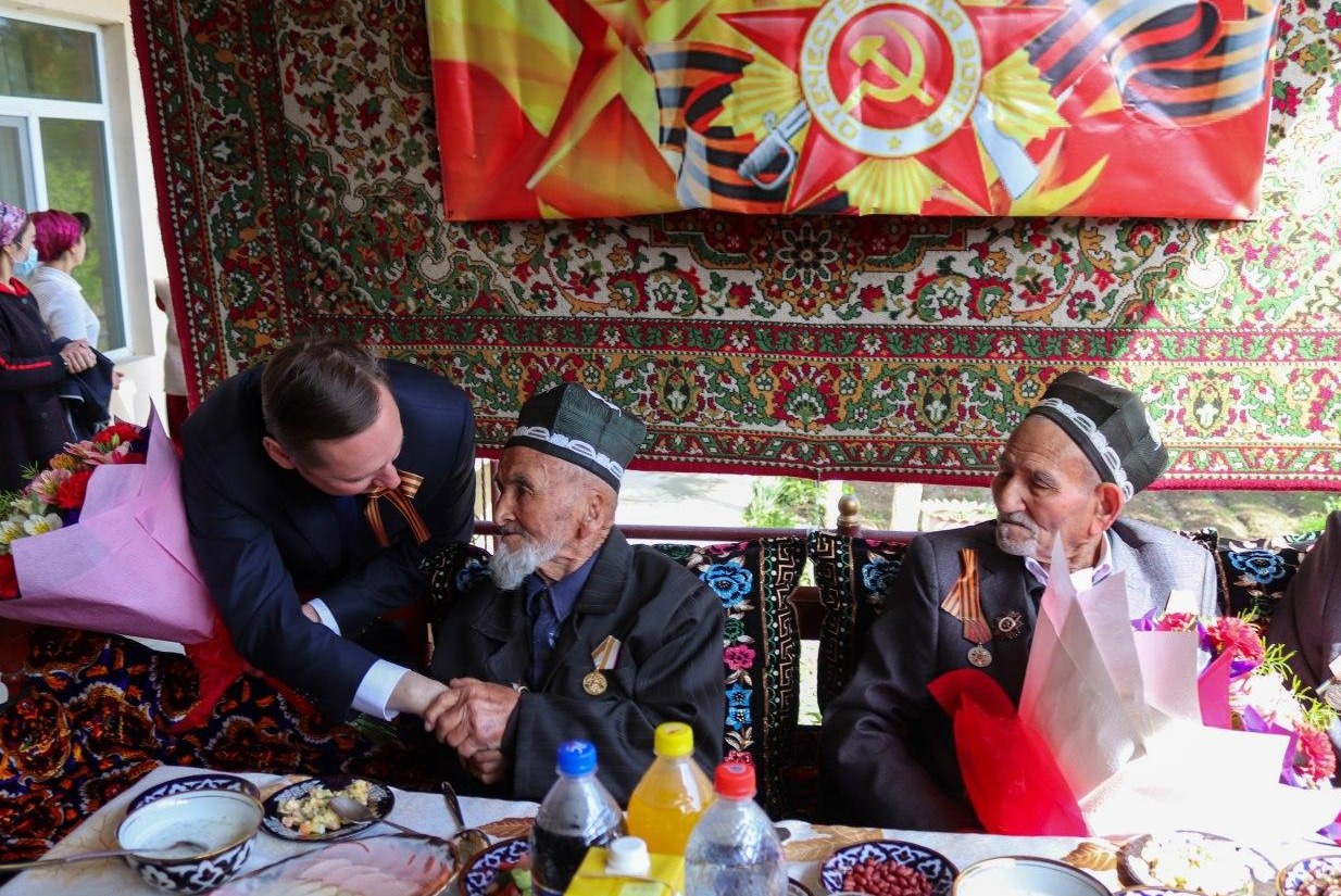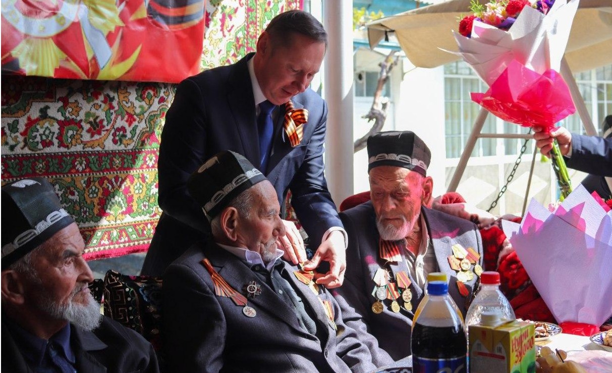 Юбилейные медали ветеранам — 99-летним Мирзоали Ибрагимову и Дастуру Мансурову, 97-летнему Рахимбою Рахматову, 96-летнему Камбару Хайбарову и 95-летнему Маъмуру Ахмедову — вручили Генконсул России в Худжанде Андрей Варламов и руководитель Российского центра науки и культуры (РЦНК) города Худжанда Иван Иванов.