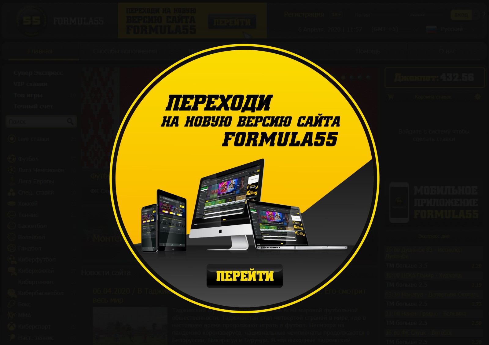 Первая Национальная Букмекерская компания «Formula55» сегодня запустила свой обновлённый сайт. Теперь пользоваться обновлённым сайтом formula55.tj стало ещё проще, удобнее и быстрее.