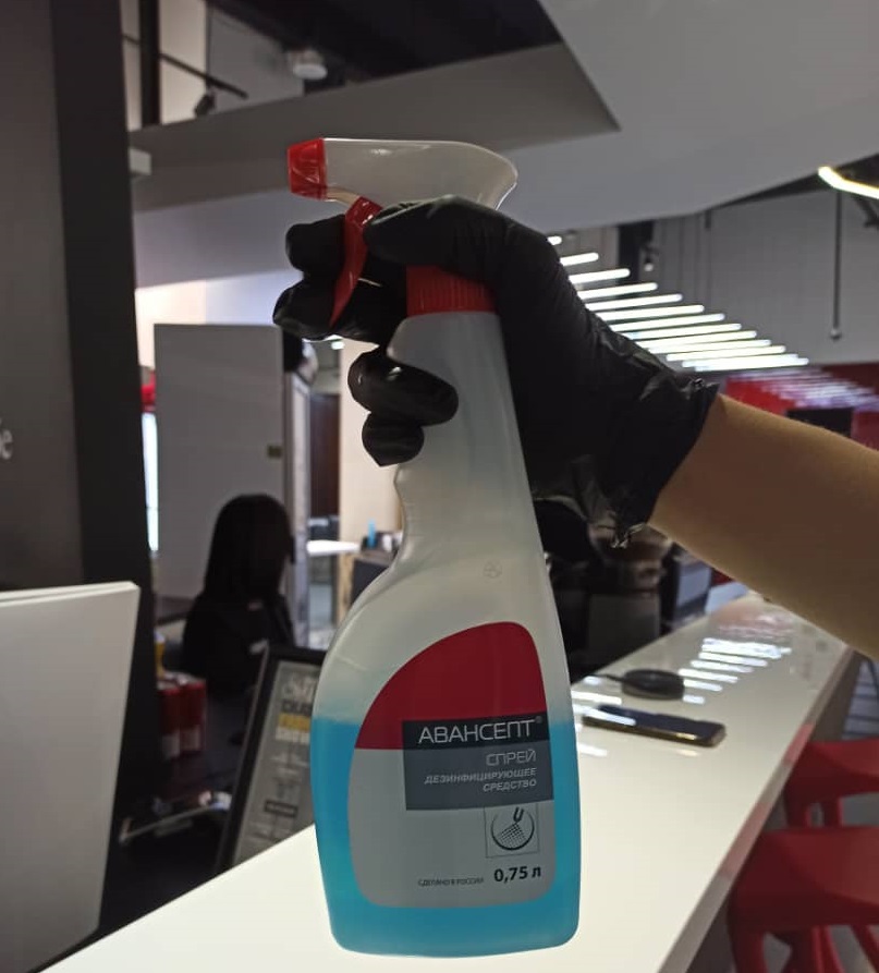 Так имидж-лаборатория «Персона» теперь закрывает свои двери раз в неделю на день и производит полную дезинфекцию помещения. Ежедневно каждые 15 минут сотрудники обрабатывают все поверхности дезинфицирующим средством «Аламинол», в том числе, после каждого клиента. Продезинфицированы также все инструменты работников. Сами они работают в перчатках и медицинских масках. Каждому клиенту перед процедурами руки обрабатывают антисептиком.
