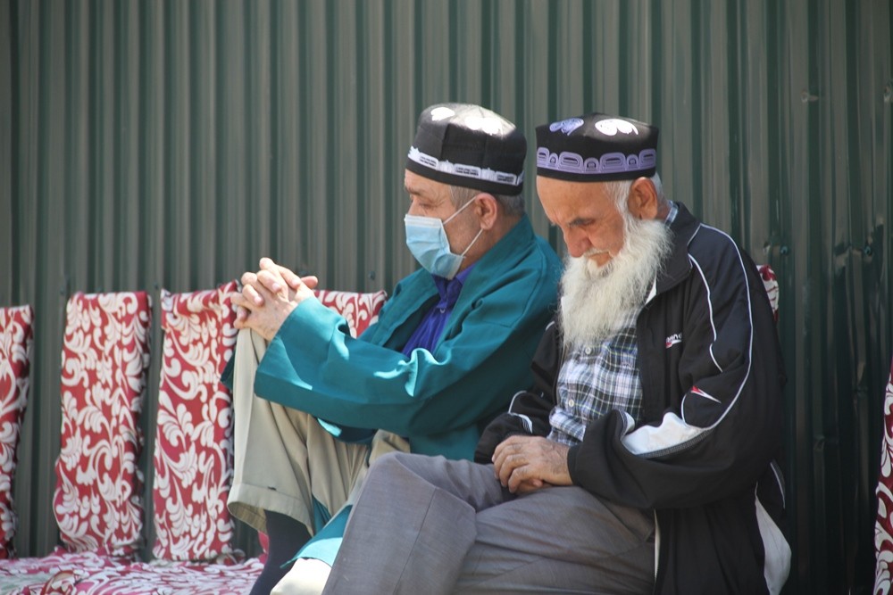 У самого дома покойного Джалолиддина Пирова безлюдно. Члены семьи на домашнем карантине, и поэтому люди приходят на молитву к находящейся недалеко библиотеке.