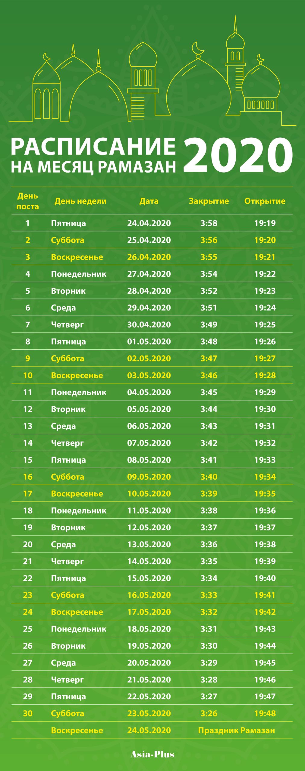 Для вашего удобства сделали календарь, по которому можно сверять время открытия и закрытия поста.