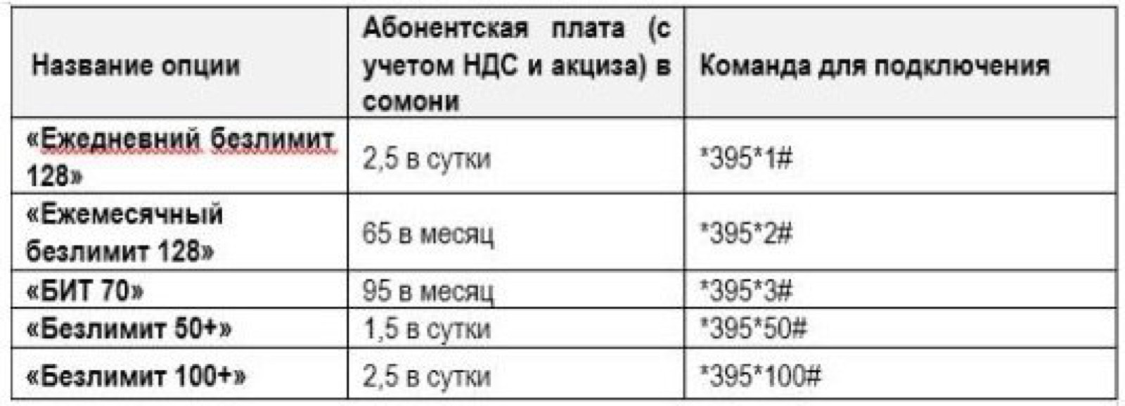 Цена новых интернет-пакетов и команды для подключения: