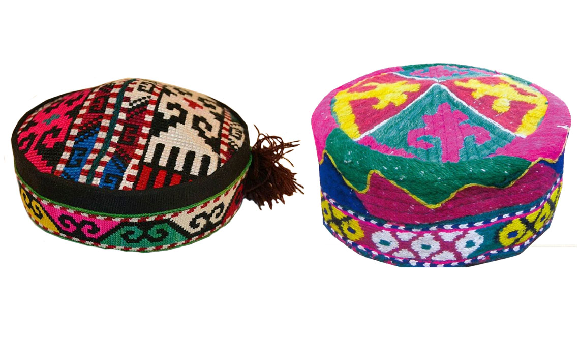В Южном Таджикистане тюбетейки очень яркие и различаются по цвету и орнаменту.