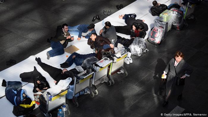 Вечером 18 марта мы обнаружили в аэропорту Шереметьево большое скопление мигрантов, расположившихся прямо на полу – видимо, в результате долгого ожидания. Эти люди жаловались на то, что их «все кинули», им нечего есть, некуда возвращаться, что последние деньги они истратили на билеты, а теперь авиакомпания UTAir отказывается возвращать им деньги, хотя рейсы отменены.