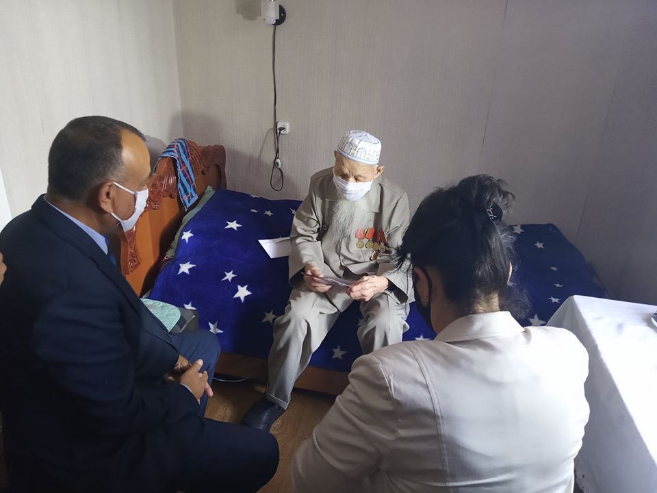 В преддверии 75-й годовщины Дня Победы первый заместитель министра труда, миграции и занятости населения РТ Абдугаффор Рахмонзода, председатель города Бустон Раъно Хошимзода и начальник управления агентства труда и занятости населения в Согдийской области Шермухаммад Нодири навестили единственного оставшегося в живых в городе ветерана, сообщил "Азия-Плюс" заведующий отделом социального развития города Бустон Мамнур Нурзода.