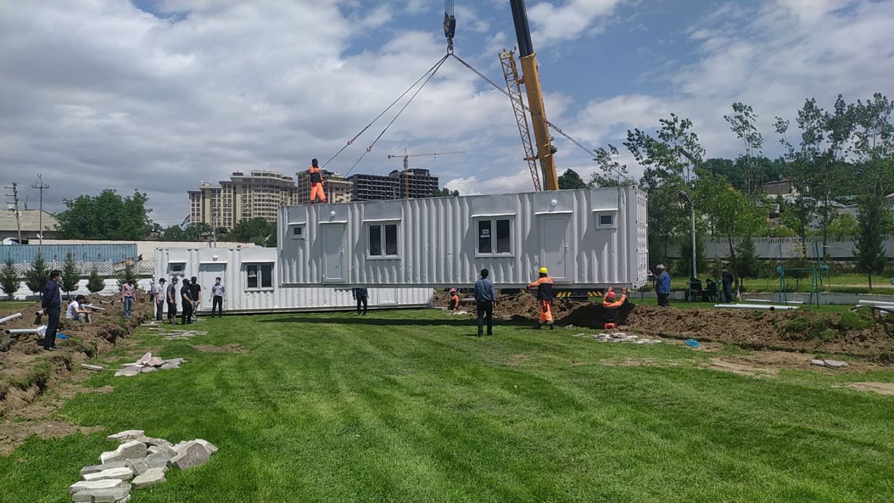 Такие контейнеры используются в качестве мобильного госпиталя во время пандемии коронавируса.  Они снизят нагрузку на душанбинские больницы, где не хватает мест для приема больных. В контейнерах установлены кровати с постельным бельем, имеются душевые, санузлы, кондиционеры.