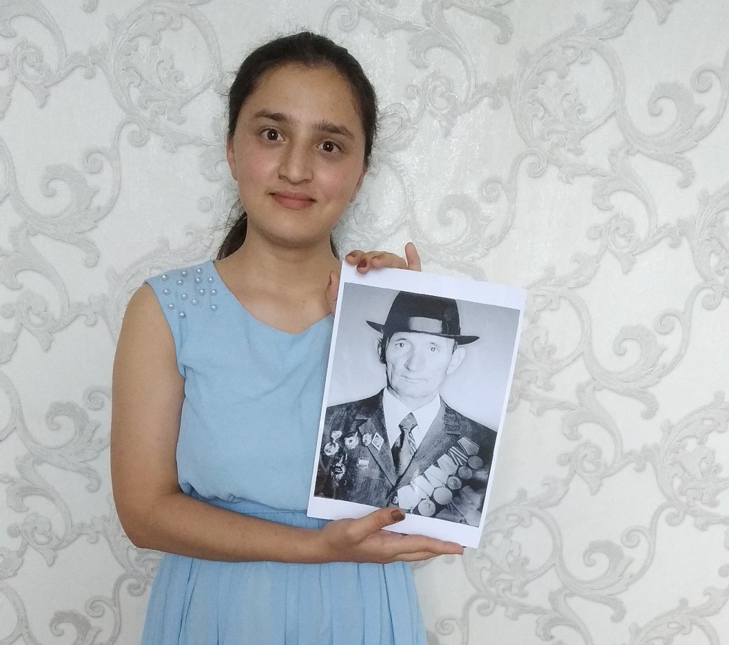 — Мой герой — мой дедушка, Валиев Саидгани! Он журналист, переводчик, родился в Ташкенте в 1905 году. Несмотря на то, что он и не идти на фронт, как многодетный отец (тогда у него их было пятеро), он отправился туда добровольцем.