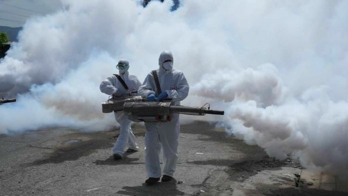 Потом показали людей в защитных костюмах, которые поливают автодороги в Душанбе или Хороге дезинфицирующими средствами, и представителей правящей Народно-демократической партии, которые толпой ходят по частному сектору в городах республики и раздают жителями брошюры с информацией о профилактике вируса и многоразовые маски.