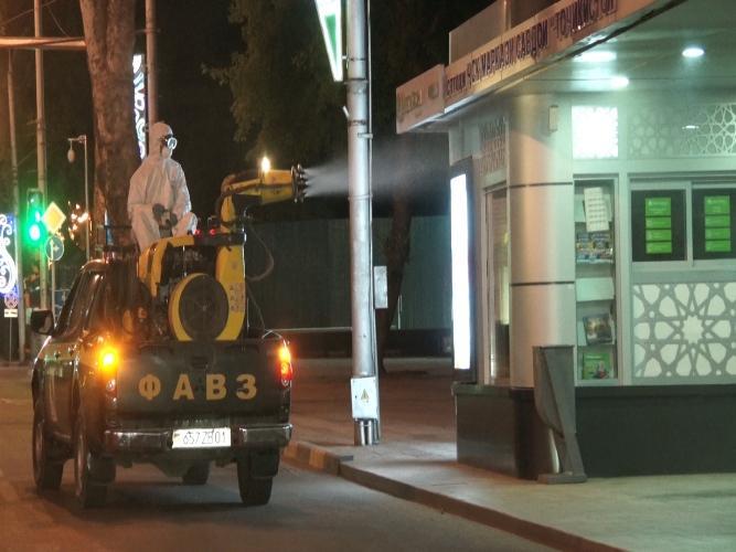 Для подавляющего большинства населения Таджикистана телевидение — основной источник информации. Из-за пандемии COVID-19, которая, похоже, накрывает республику со всей силой, спрос на локальную информацию среди телеаудитории растёт ещё больше. Однако, если верить картинке, которую прямо сейчас передают таджикские госканалы, всю страну должны спасти люди в защитных костюмах, с утра до ночи поливающие улицу дезрастворами.