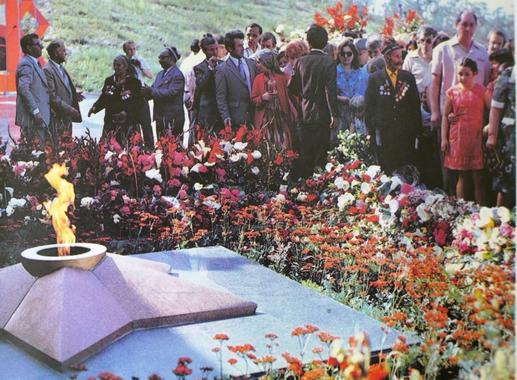 45 лет назад в 1975 году в ознаменование 30-летия Победы над фашистской Германией в Душанбе был открыт мемориальный комплекс «Родина – мать» (так он назывался в официальных документах) павшим воинам, в нагорном парке Победы. Его установили на холме таким образом, чтобы весь комплекс хорошо просматривался со стороны города, с его улиц площадей и отдельных точек.