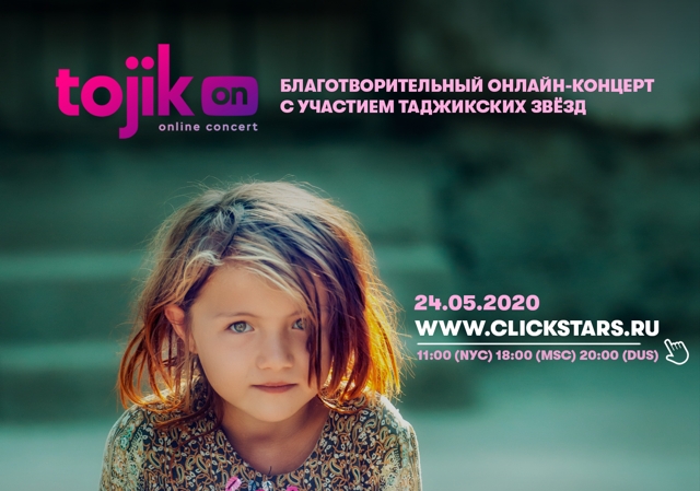 24 мая состоится первый благотворительный онлайн-концерт с участимем звезд таджикской эстрады. Посмотреть его можно будет совершенно бесплатно на платформе www.clickstars.ru и на страницах компании «МегаФон Таджикистан» в соцсетях.