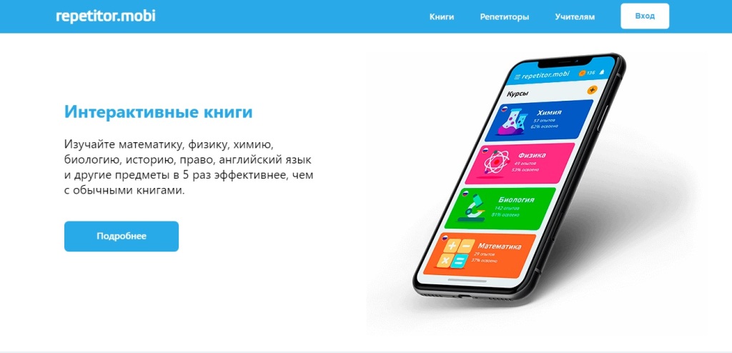 Согласно исследованиям организации, ученики, которые занимаются с интерактивными книгами repetitor.mobi, достигают целевых результатов обучения в 4,6 раз чаще, чем ученики, которые занимаются по обычным учебникам.
