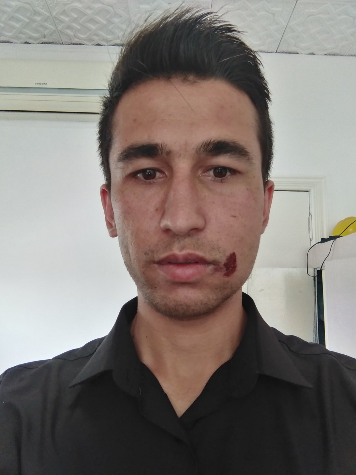 «Человек, который представился «председателем», сказал что-то и я повернулся в его сторону. В этот момент тот, который представился «жителем махалли», неожиданно нанёс мне два удара в лицо и голову, я упал на дорогу. Этот человек продолжал бить меня, нанося удары кулаками и ногой. Я просил остановиться и объяснить причину, но он продолжал бить, двое других стояли и смотрели. Он остановился только тогда, когда у меня пошла кровь изо рта. За всем произошедшим наблюдала женщина с ребёнком в 50 метрах от нас», — рассказывает Абдуллох Гурбати.