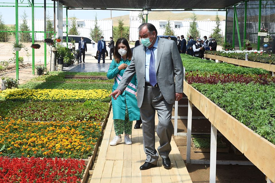 В рамках рабочей поездки в этот же день Эмомали Рахмон побывал в дехканском хозяйстве «Хуросон», где в питомнике на 13 га выращиваются черенки, саженцы декоративных цветов и тенистых кустарников. В частности, здесь можно найти березу, дуб, декоративную сливу, крымскую сосну, вечнозеленую магнолию, сирень, подорожник, барбарис, мичуринскую сливу, финики, яблони, аризонский кипарис, арчу, акацию и др.