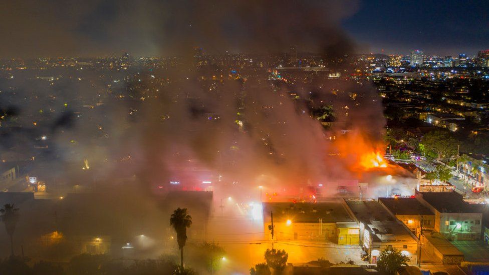 Комендантский час в Лос-Анджелесе объявлен с 20:00 до 5:30 по местному времени. Мэр города Эрик Гарсетти сказал, что для него нынешняя ситуация — самый сложный момент со времени Лос-анджелесского бунта в 1992 году, вспыхнувшего после вынесения оправдательного приговора белым полицейским, избившим во время задержания афроамериканца Родни Кинга.