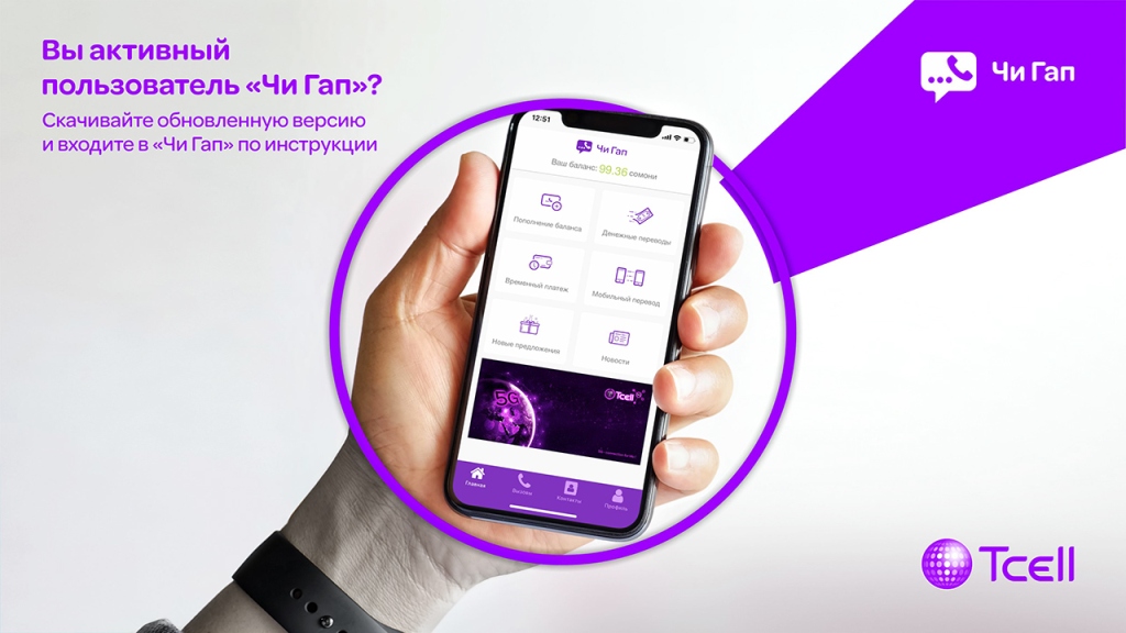 Копания Tcell анонсировала запуск обновленного приложения «Чи Гап» — одного из самых любимых приложений для общения в Таджикистане и за его пределами. Одна из главных особенностей нового приложения – высокое качество соединения при голосовых звонках на городские и мобильные телефоны Таджикистана.