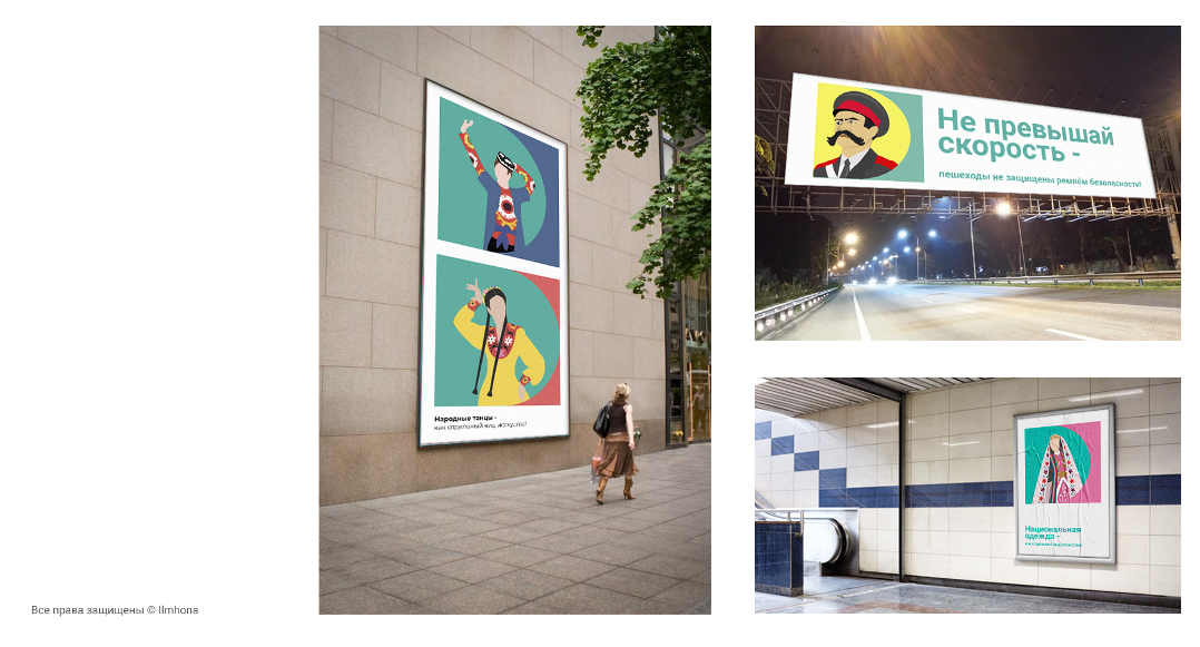 — И, конечно же, наши дизайнеры, во главе с талантливым инструктором Дониёром Сангиновым, не смогли обойти их историю стороной и не проиллюстрировать, — говорит Ширин. — Образ милиционера был вдохновлён Мулло Нуровым — самый усатый и честный «гаишник» таджикской СССР, знаменитый не только в Таджикистане.