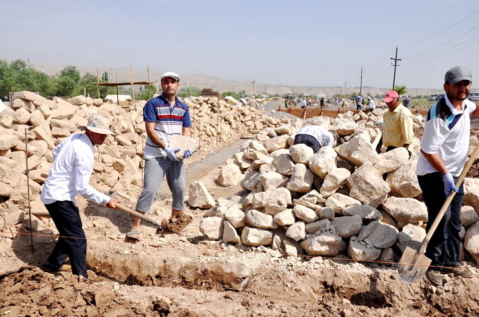 Так, в строительстве участвуют учителя общеобразовательных школ трех джамоатов Хуросона — Хилоли, Садриддина Айни и Кизилкала.